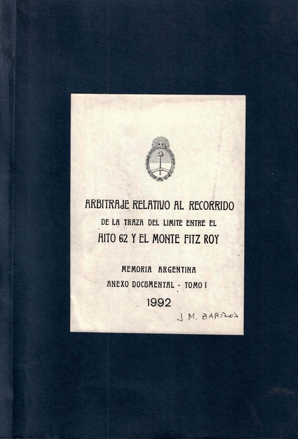 Arbitraje relativo al recorrido de la Traza del límite entre el Hito 62 y el Monte Fitz Roy. Memoria Argentina. Anexo documental
